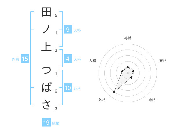 田ノ上 つばささんを姓名の画数から五運を鑑定