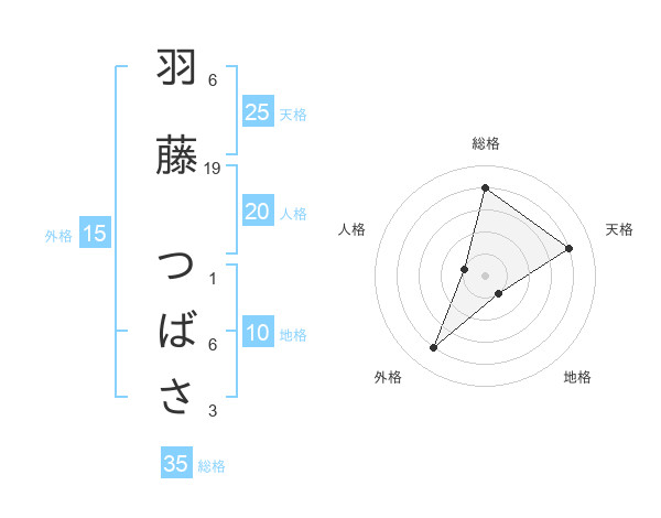 羽藤 つばささんの総格は35画の4点!