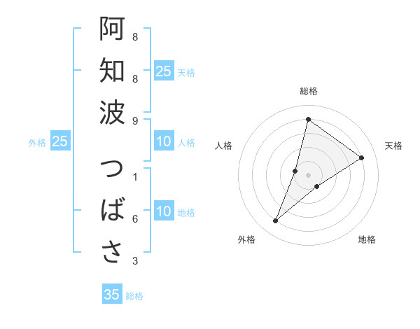 阿知波 つばささんの天格は25画の4点!