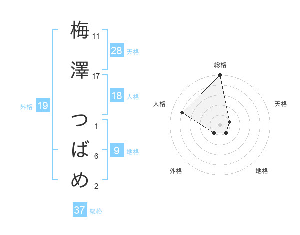 梅澤 つばめさんの総格は37画の5点!