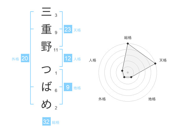 三重野 つばめさんを姓名の画数から五運を鑑定