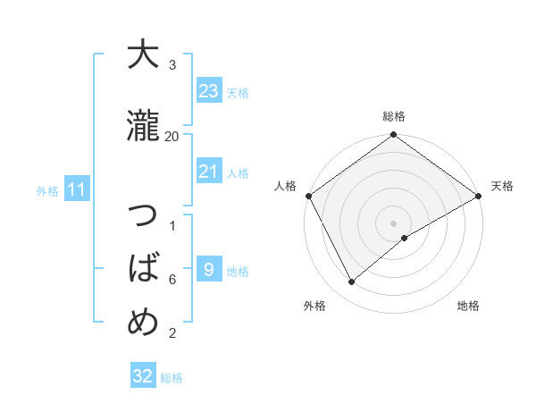 大瀧 つばめさんを姓名の画数から五運を鑑定