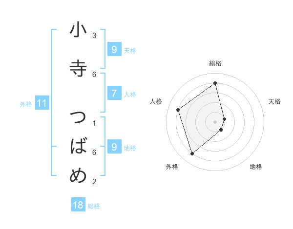 小寺 つばめさんを姓名の画数から五運を鑑定