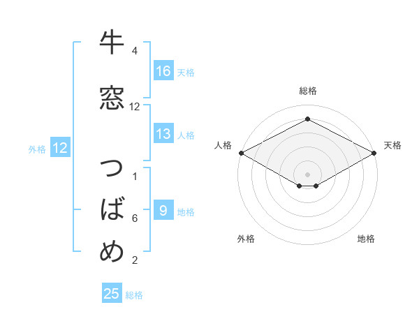 牛窓 つばめさんの総格は25画の4点!