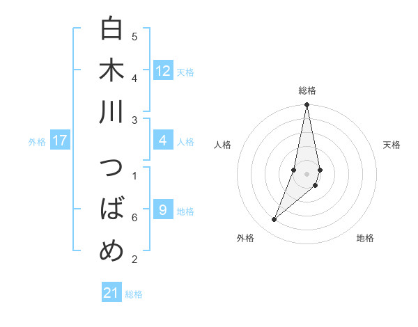白木川 つばめさんの総格は21画の5点!
