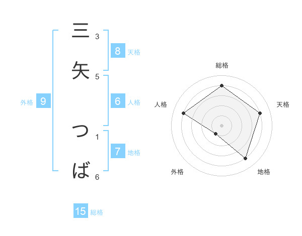 三矢 つばさんの総格は15画の4点!