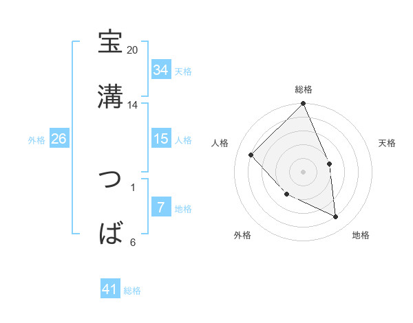宝溝 つばさんを姓名の画数から五運を鑑定