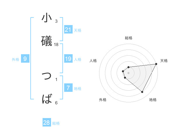 小礒 つばさんの総格は28画の1点!
