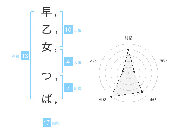 早乙女 つばさんを姓名の画数から五運を鑑定