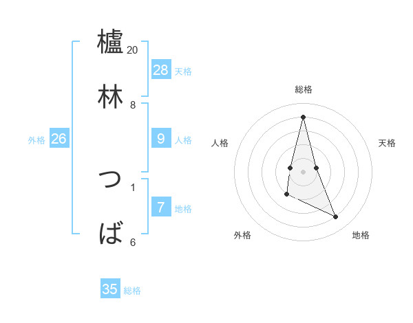 櫨林 つばさんの総格は35画の4点!