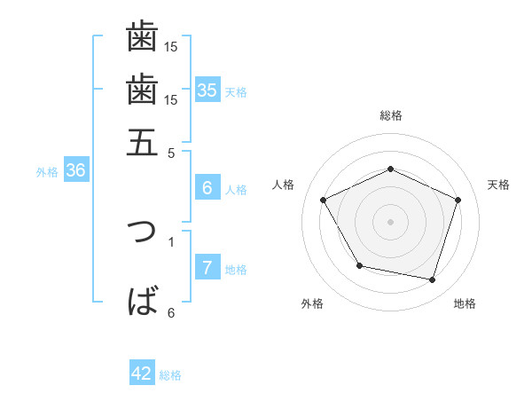 歯歯五 つばさんを姓名の画数から五運を鑑定