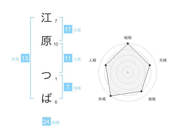 江原 つばさんの総格は24画の5点!