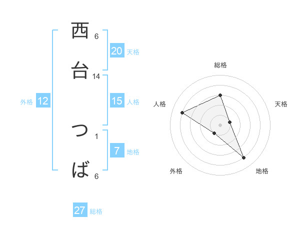 西台 つばさんの総格は27画の3点!