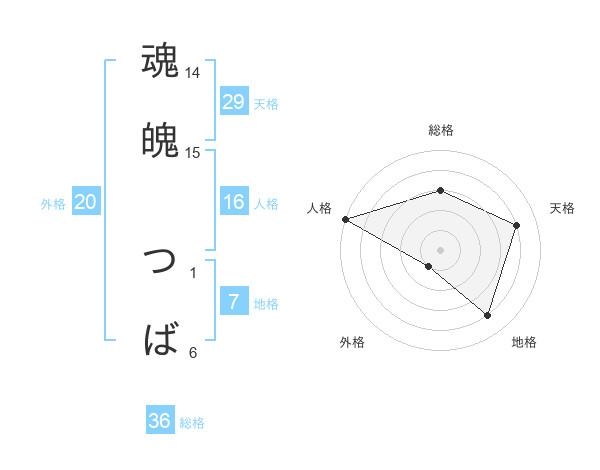 魂魄 つばさんを姓名の画数から五運を鑑定