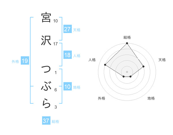 宮沢 つぶらさんを姓名の画数から五運を鑑定