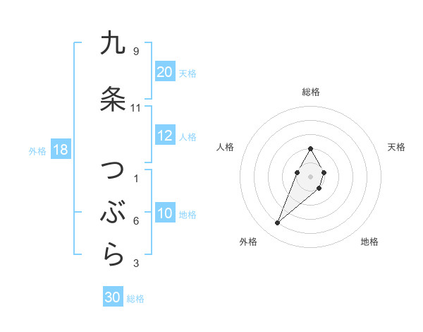 九条 つぶらさんを姓名の画数から五運を鑑定