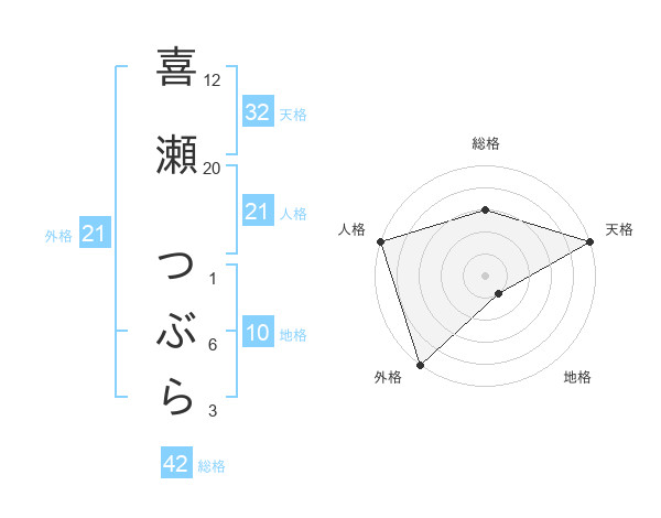 喜瀬 つぶらさんの人格は21画の5点!
