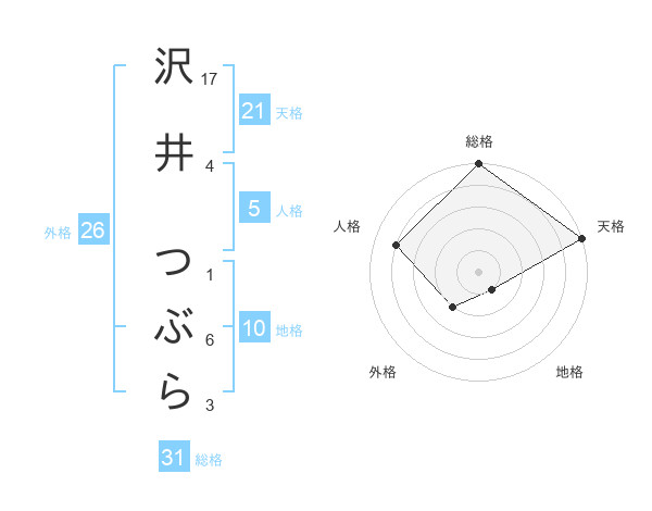 沢井 つぶらさんを姓名の画数から五運を鑑定