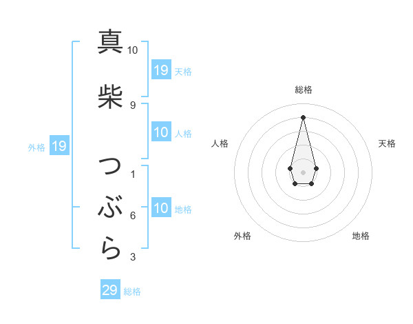 真柴 つぶらさんを姓名の画数から五運を鑑定