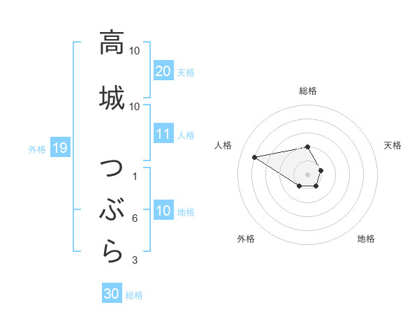 高城 つぶらさんの総格は30画の2点