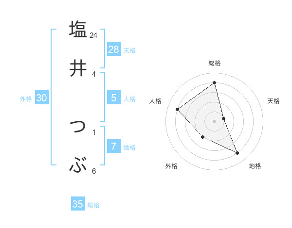 塩井 つぶさんを姓名の画数から五運を鑑定