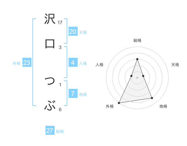 沢口 つぶさんを姓名の画数から五運を鑑定