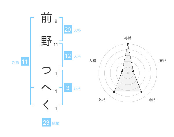前野 つへくさんの天格は20画の1点!