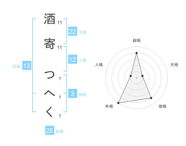 酒寄 つへくさんを姓名の画数から五運を鑑定