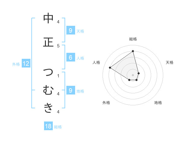 中正 つむきさんの総格は18画の4点!
