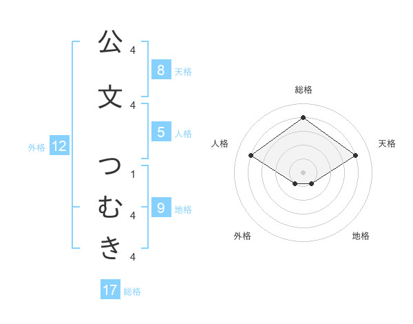 公文 つむきさんの総格は17画の4点!