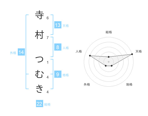 寺村 つむきさんの天格は13画の5点!