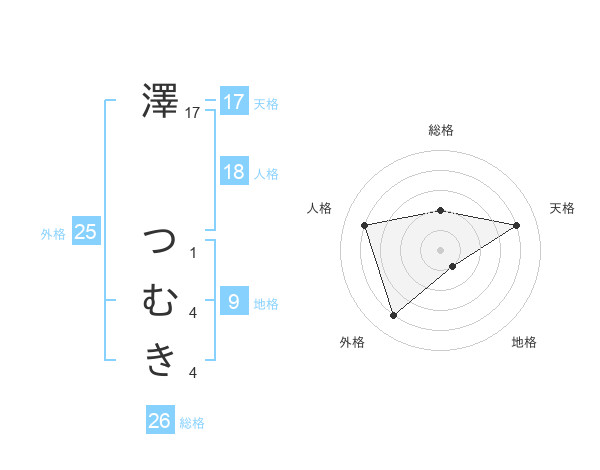 澤 つむきさんの天格は17画の4点!