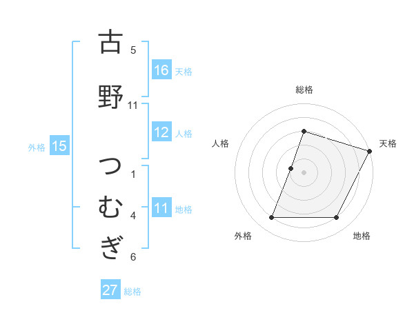 古野 つむぎさんを姓名の画数から五運を鑑定