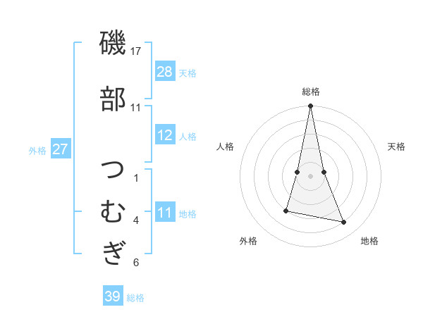 磯部 つむぎさんを姓名の画数から五運を鑑定