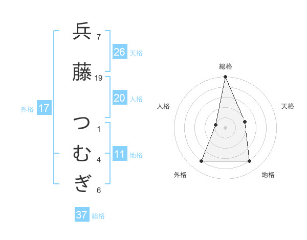 兵藤 つむぎさんの総格は37画の5点!