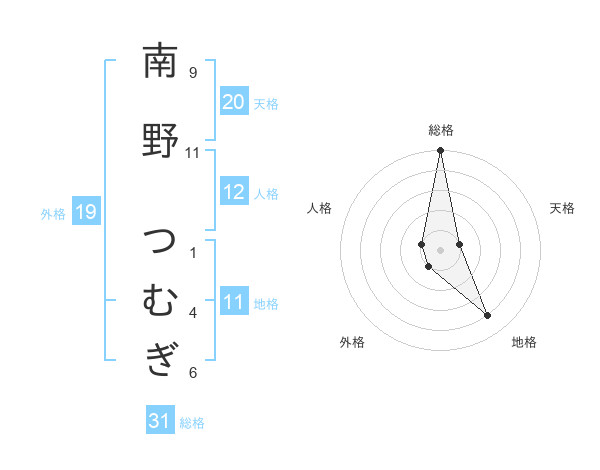 南野 つむぎさんの天格は20画の1点!