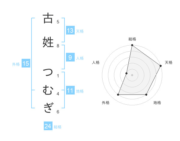 古姓 つむぎさんを姓名の画数から五運を鑑定