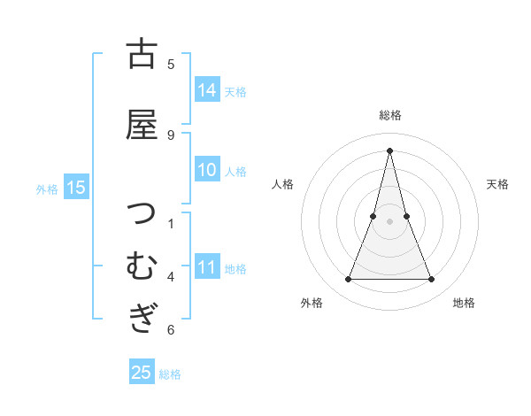古屋 つむぎさんの総格は25画の4点