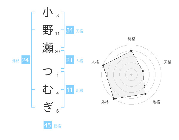 小野瀬 つむぎさんを姓名の画数から五運を鑑定