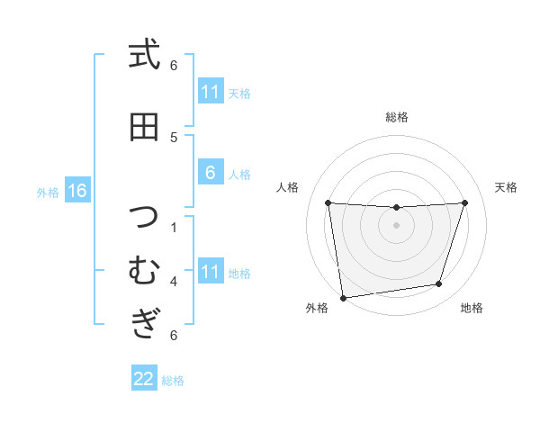 式田 つむぎさんの地格は11画の4点!