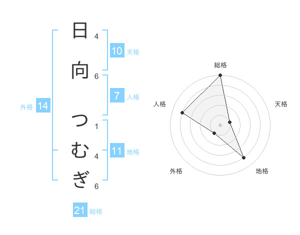 日向 つむぎさんの総格は21画の5点!