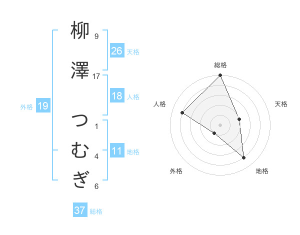 柳澤 つむぎさんの地格は11画の4点!