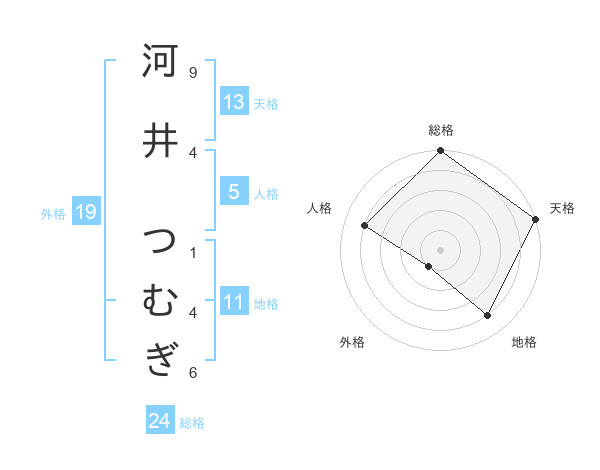 河井 つむぎさんを姓名の画数から五運を鑑定