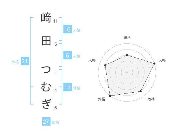 﨑田 つむぎさんの外格は21画の5点!