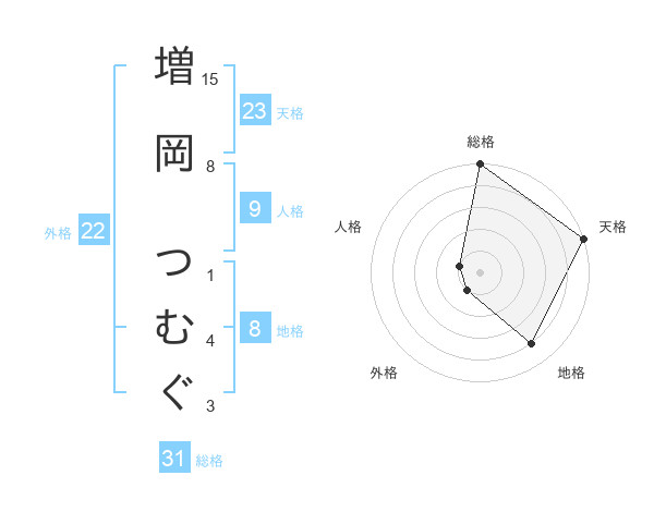 増岡 つむぐさんを姓名の画数から五運を鑑定
