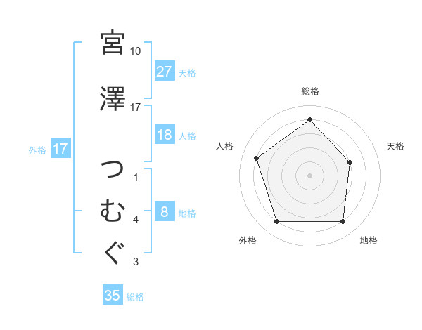 宮澤 つむぐさんを姓名の画数から五運を鑑定