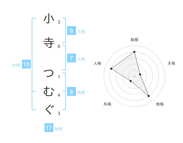 小寺 つむぐさんの総格は17画の4点!