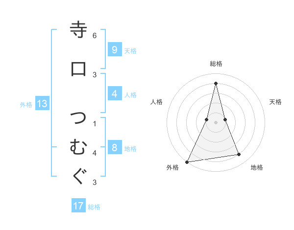寺口 つむぐさんの総格は17画の4点