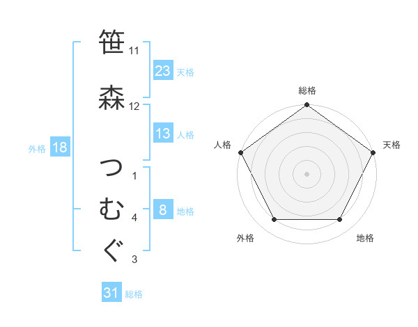笹森 つむぐさんを姓名の画数から五運を鑑定