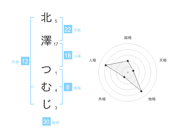 北澤 つむじさんの総格は30画の2点!